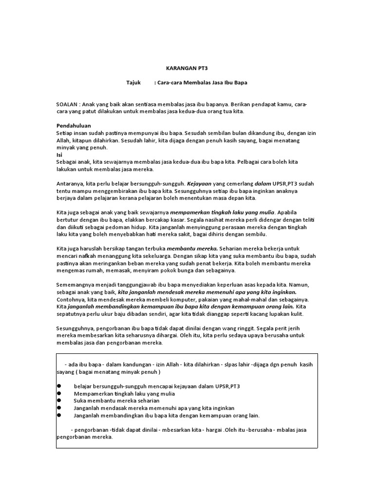 Karangan Pt3 Cara Cara Membalas Jasa Ibu Bapa Pdf